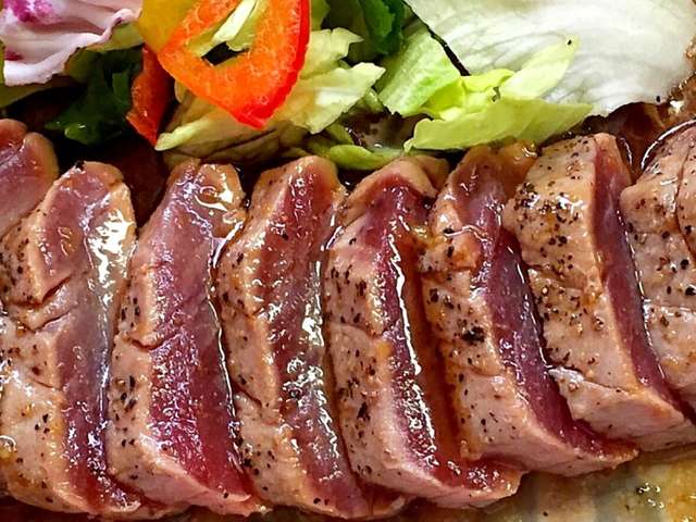 ビンチョウマグロならさくをステーキみたいに焼いてポン酢で食うと美味い