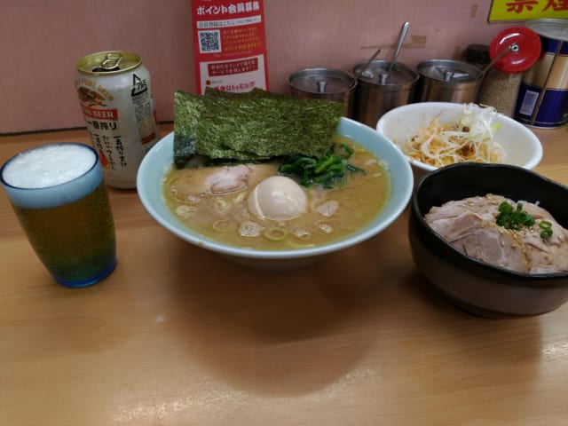 叉焼と餃子でビールをやって〆にラーメン