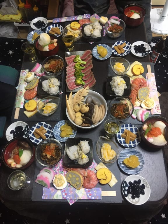 煮物と雑煮、せいぜいローストビーフと海老は焼いて作ったかもしれないがあとは市販やろな。沢山並べて豪華やけど大皿以外残されたら後々使い回しになって嫌なんだよな