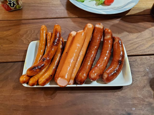 試食コーナーのウインナーみたいに一口サイズで焼いとるけど中々あんな感じに旨く焼けんわ