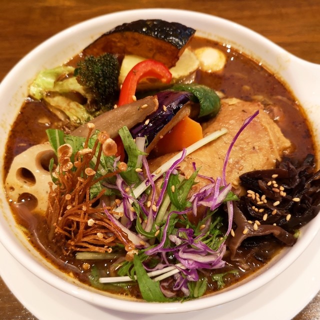 そして、大きな魅力は色鮮やかな素揚げのお野菜 まあ、食べたことない人は一度は札幌行ったら一度は食べてみなよ 千円オーバー出す価値が十分にある美味さよ