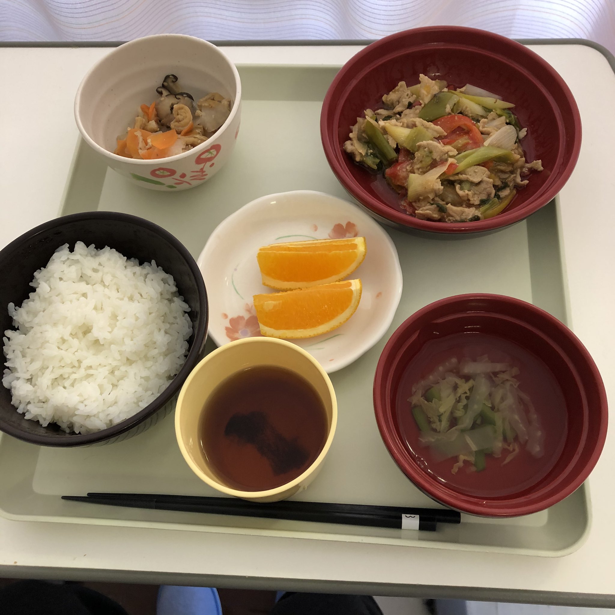 入院中は、カロリーは標準内と決まっており、おかずは大量調理のため量が決まってます。