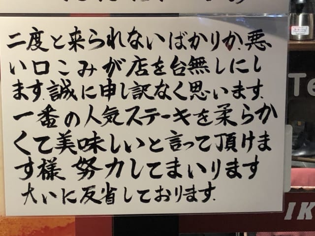 どこまでも客のせいにするのがイキリステーキさんの方針