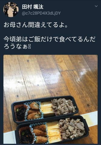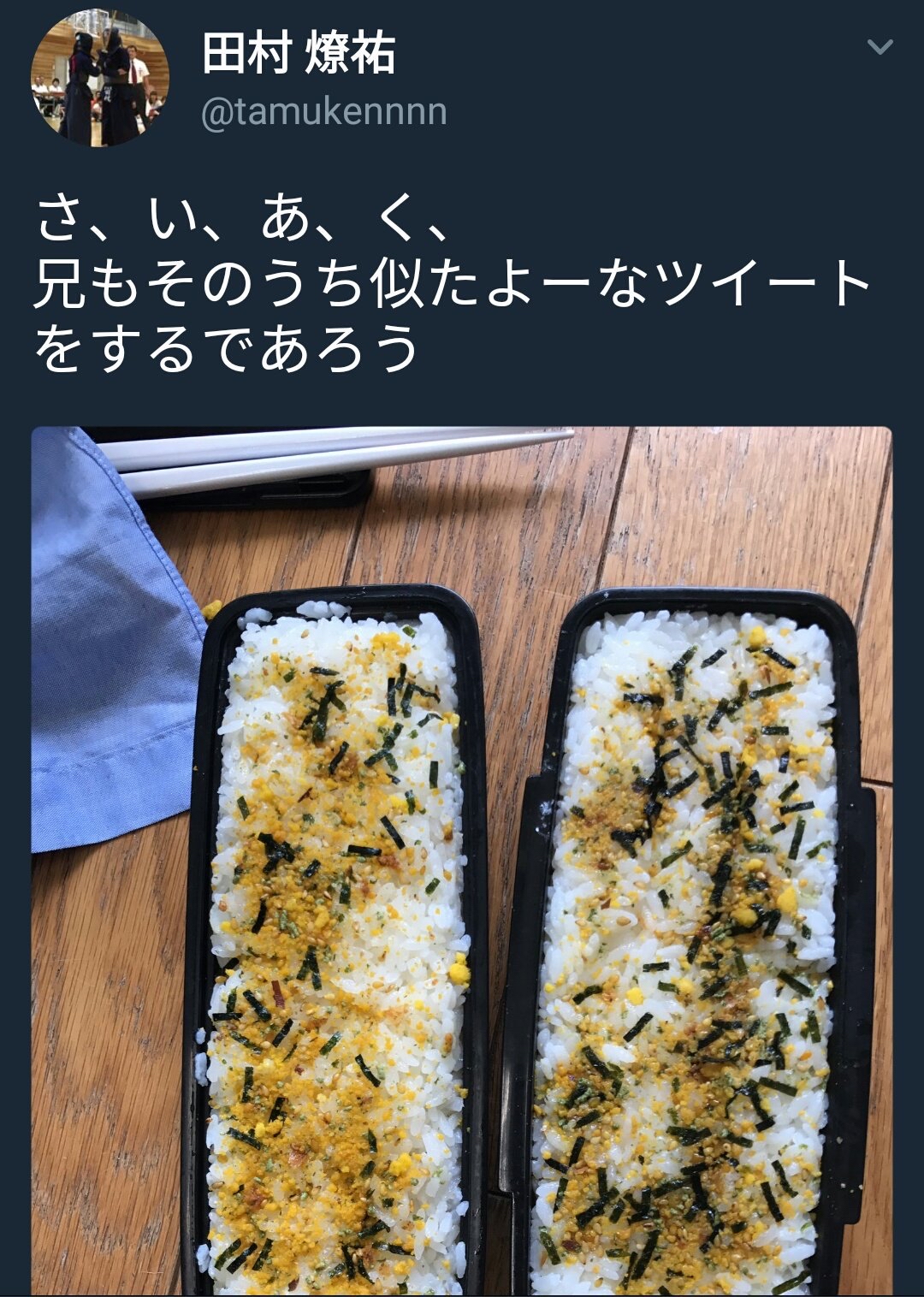 兄の勝ち誇ったツイート内容や玉子焼きをすでに一個食べてるところからもおかずのみの方が格上なのが分かる