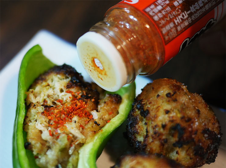 つくねを生ピーマンにぎゅっとやってバリバリ食うやつ
