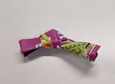 容量が小さくなって持ちやすく捨てやすくなるのと、そのまま広がった状態だと手が当たった時などに中のある菓子クズが出てきて汚れることがあるから