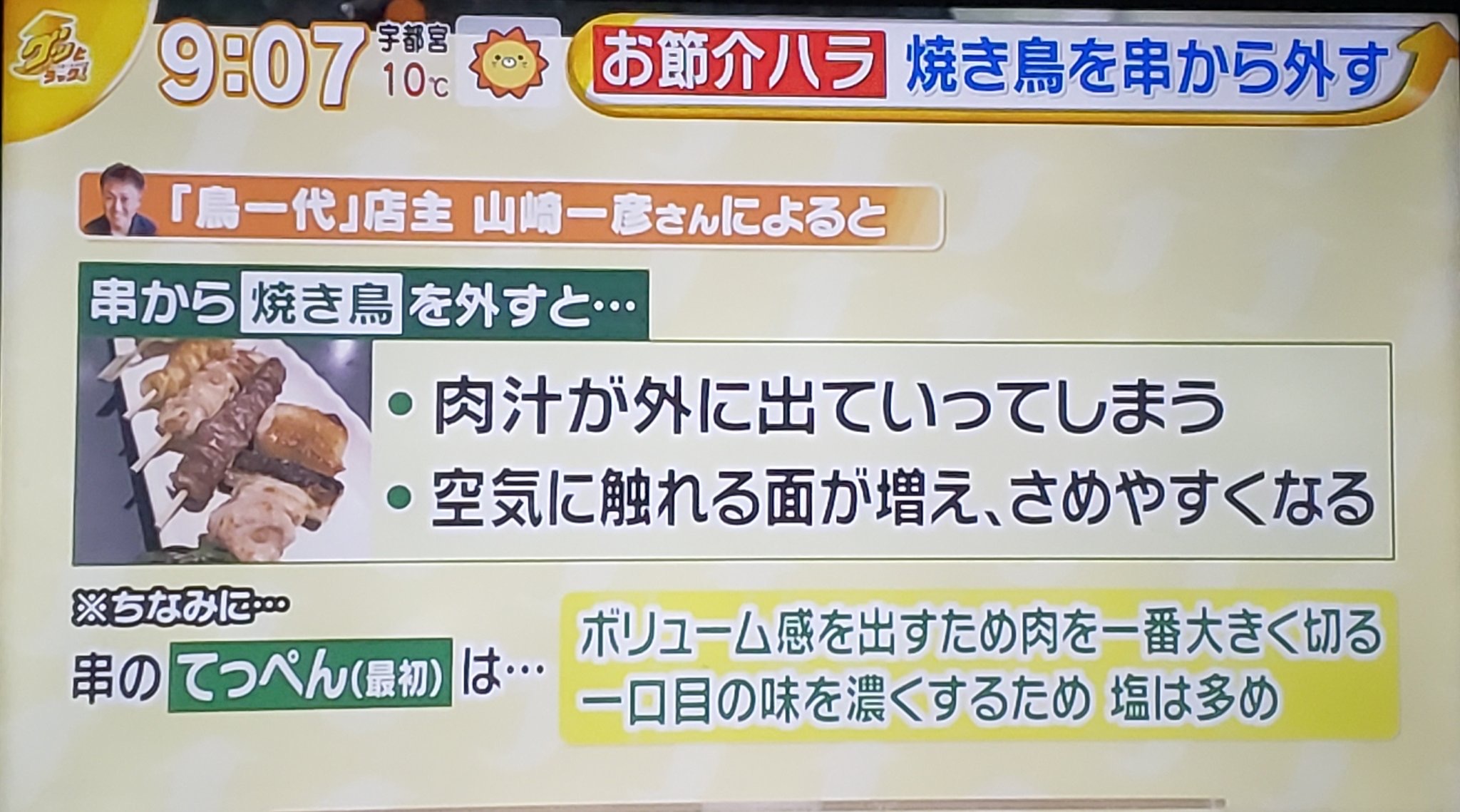 好きに食えやと思うがワイ焼き鳥屋バイトに言わせると熱々で食べたら一口目のてっぺんが一番美味しくなるような火の入れ加減にしてるから外して食うのはお勧めしない