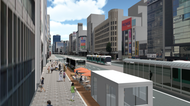 しかもこの潰した車線、広島駅へ向かうバスが大量に走るしバス停もあるんだぜ?イカれてるじゃろ?