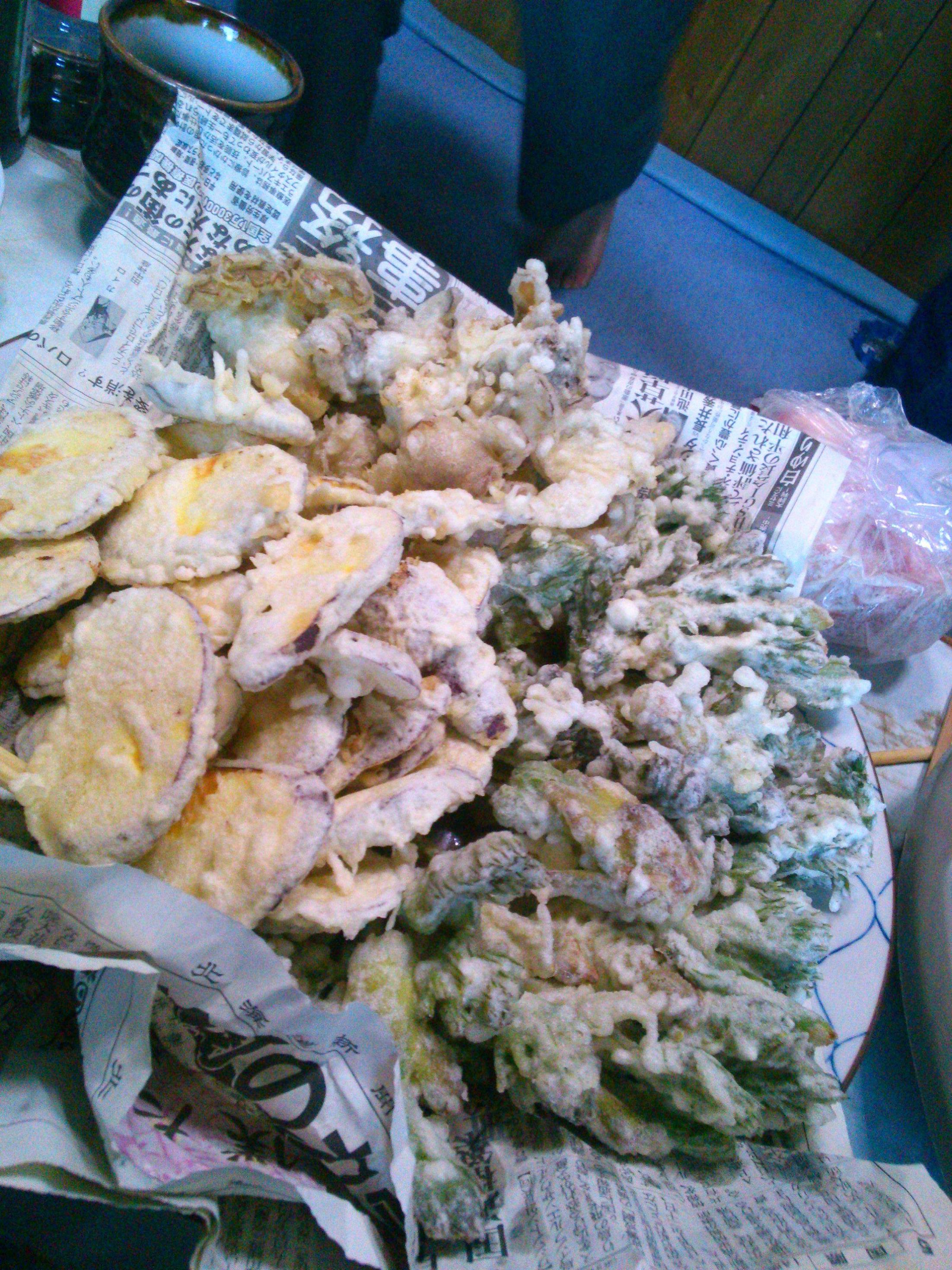 野菜と言うか山菜ではタラの芽だな。一般的な野菜だとナス、春菊、玉ねぎのかき揚げ