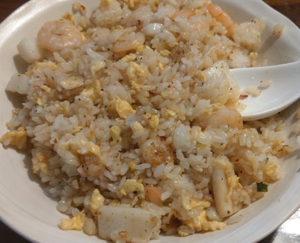 にんにくで風味つけてネギ玉ねぎウインナーとか入れてタイの蟹ペーストとケチャップで味付けた