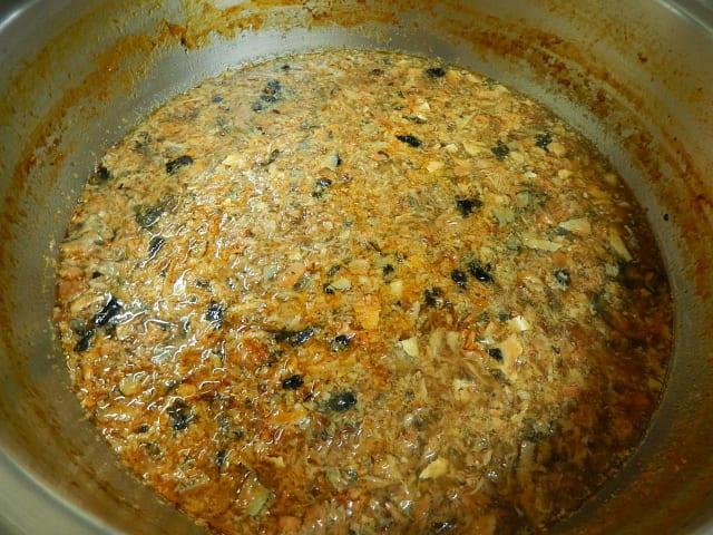 巨大なペストリーの中に、ぶつ切りのステーキと羊の内臓のシチューを詰めて焼き上げた料理。