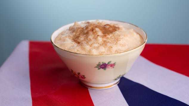 >ライス・プディングは英国唯一の米料理で、米をミルクと砂糖で煮込んで作る。