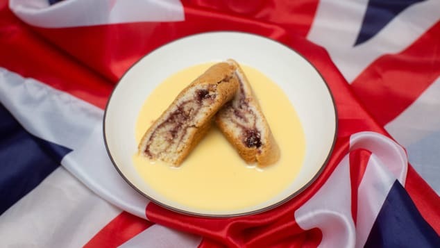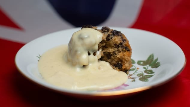 カスタードソースをたっぷりかけて食べるのが伝統的な食べ方だ。