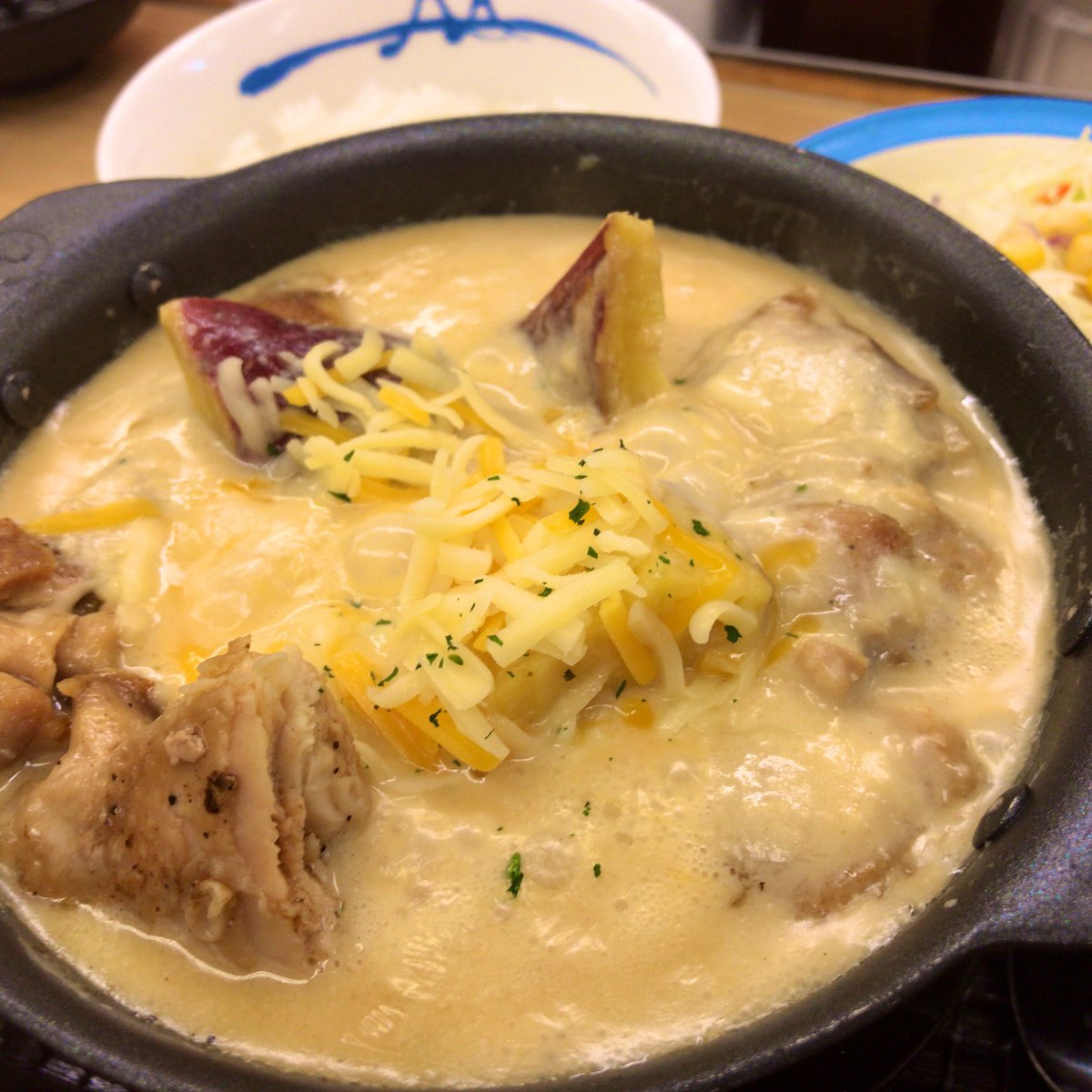 松屋のこのシリーズは鶏肉・にんにく・チーズが基本やなw