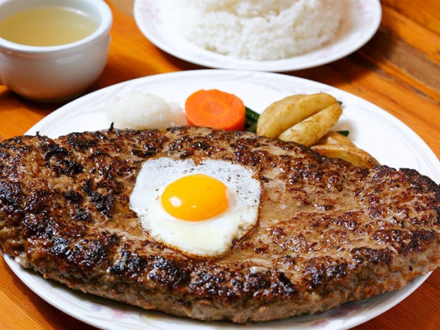 ハンバーグ定食目玉焼き乗せや
