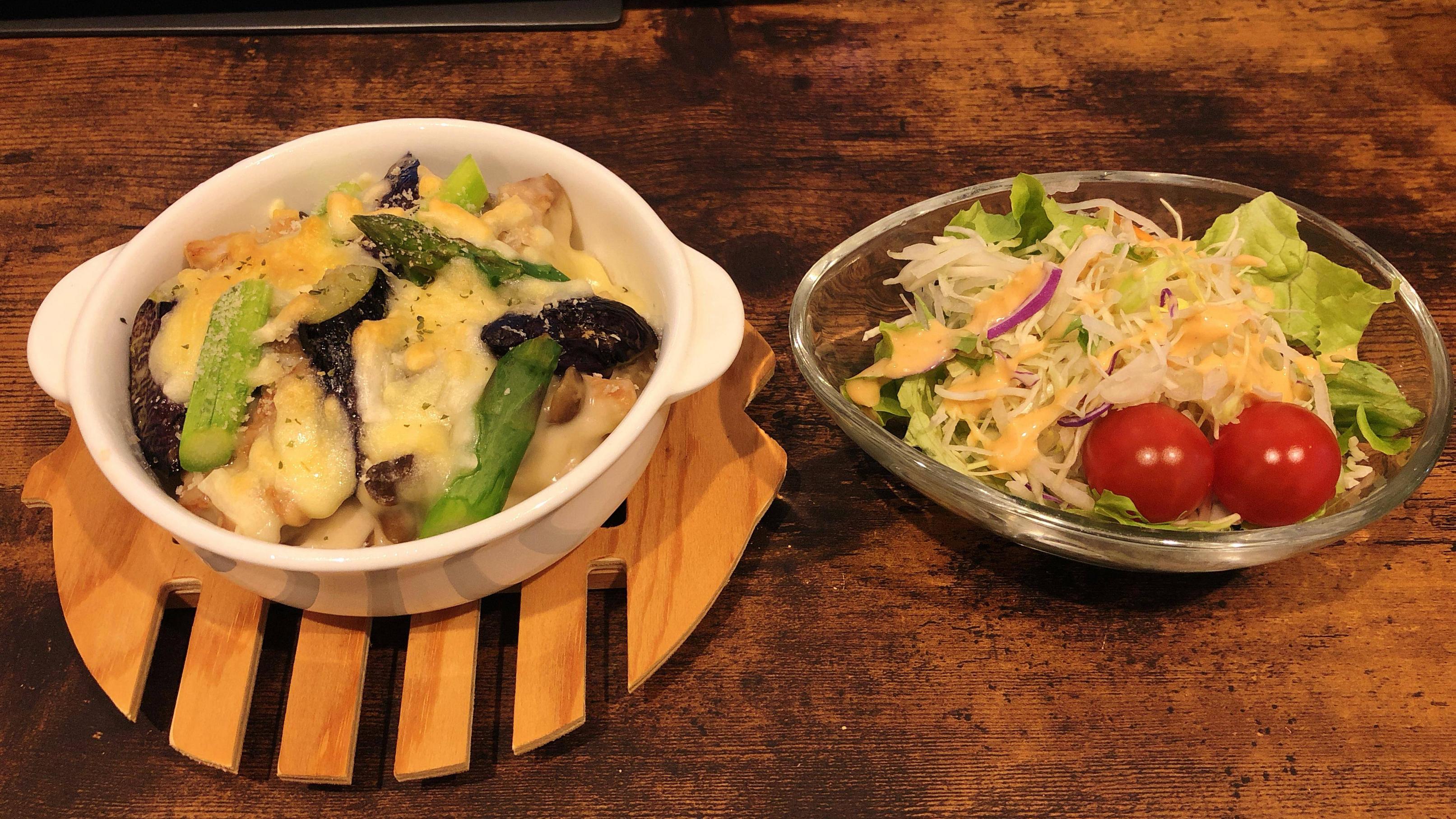>>31 ナスとアスパラのおかげでくどくない 飽きたらわさびとか刻み海苔かける