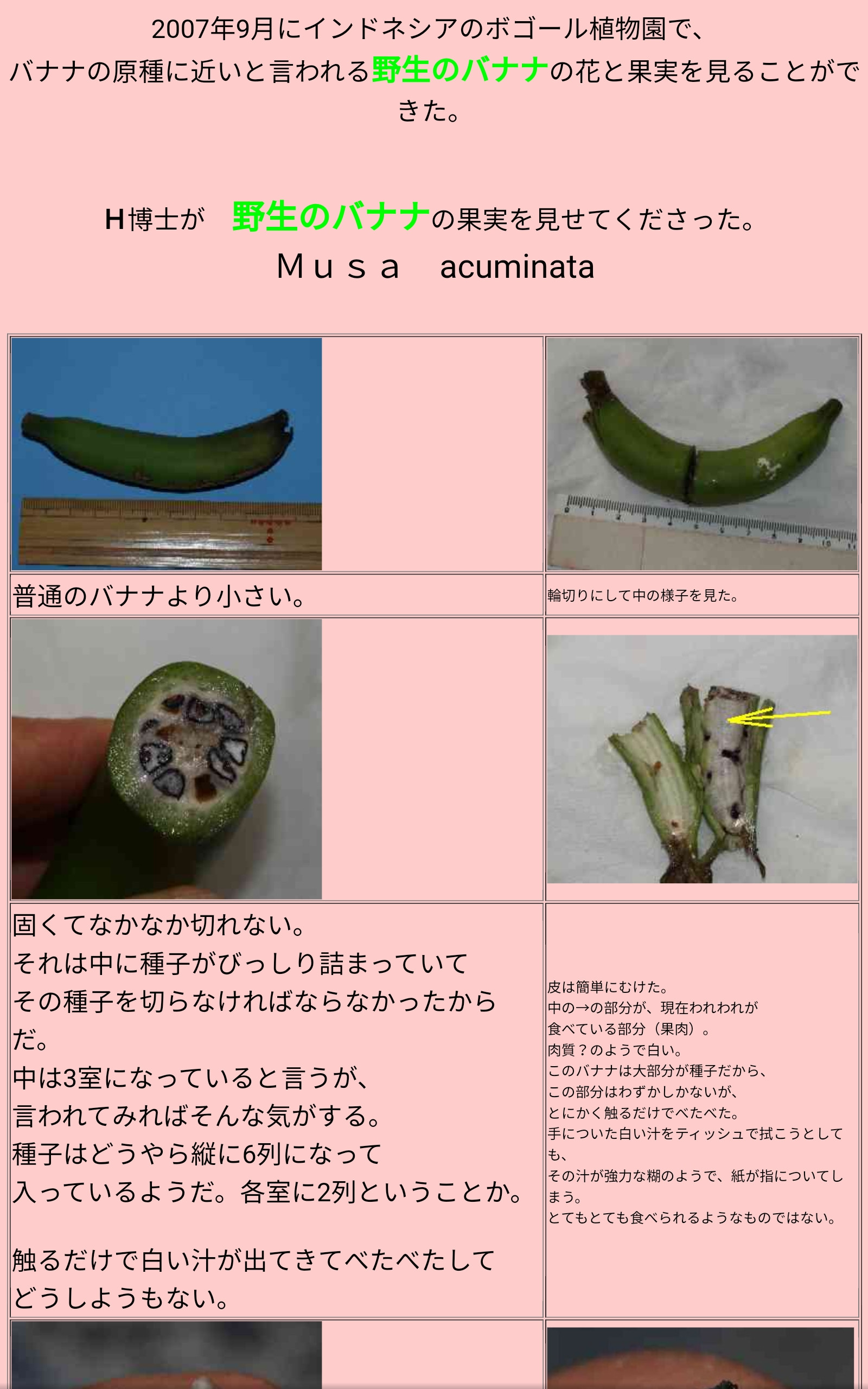 > 熱帯の住人が、昔、この種の野生品の中から、突然変異で種無しになった固体(3倍体)を見つけて栽培し、