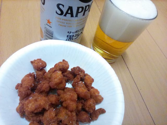 ちょうど今ヒザ軟骨揚げて飲んでるところや