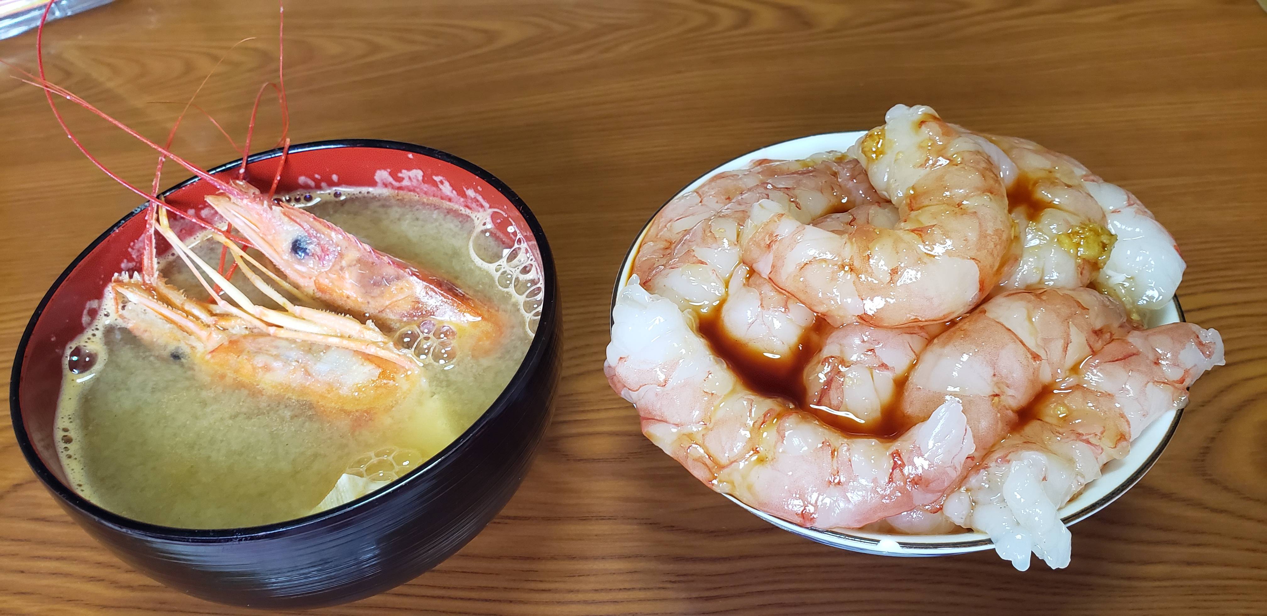 このエビの頭で出汁とった味噌汁