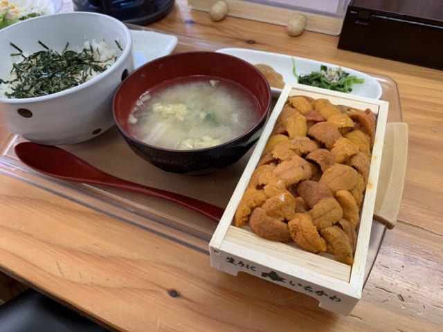 ウニを肴に日本酒ちびちびやって、〆にウニ丼。