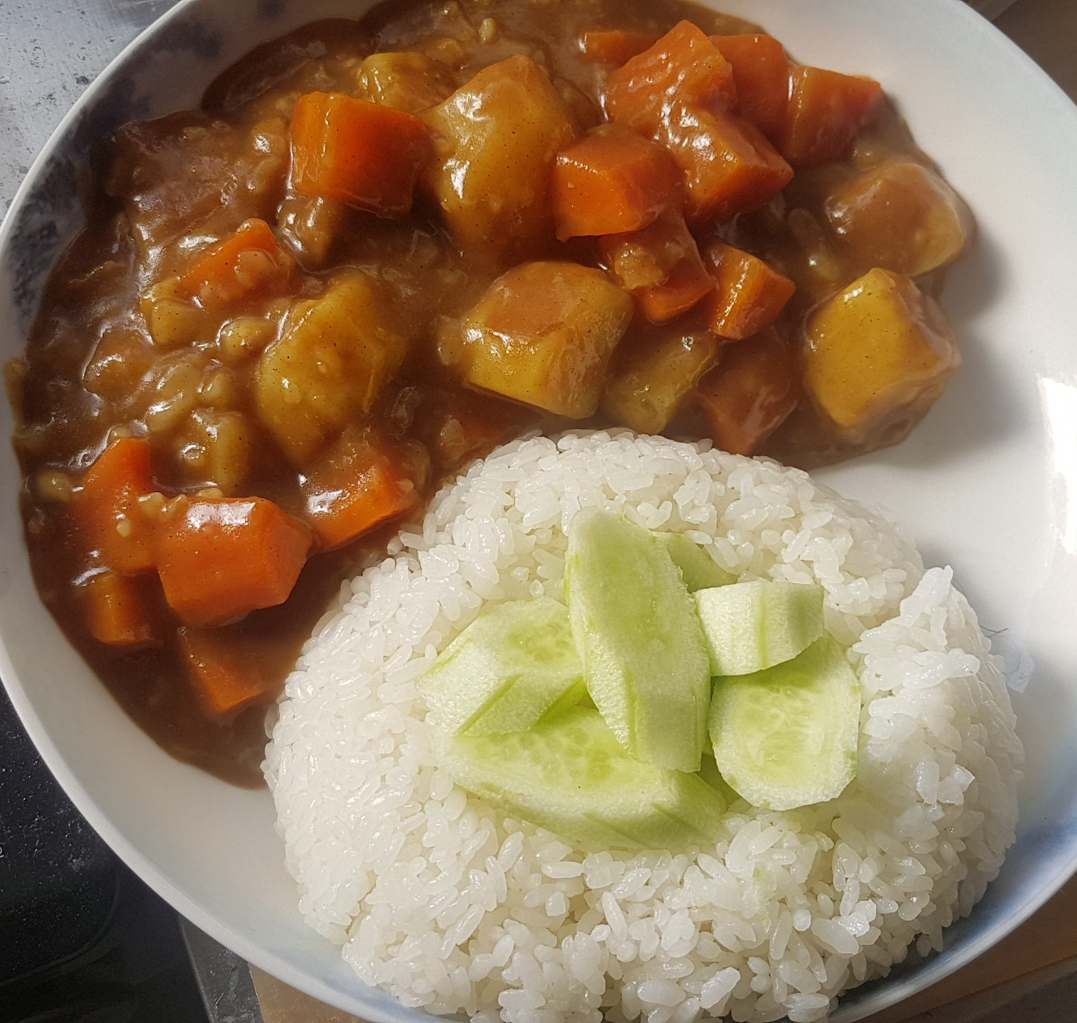 キュウリが謎だが、おうちカレーって感じでうまそうだとは思う