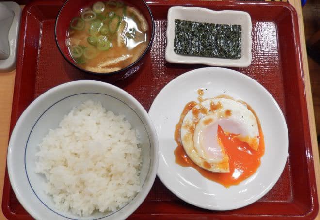 やよいの目玉焼きとソーセージの定食が丁度いいわ。たまに貝汁に変更したりして