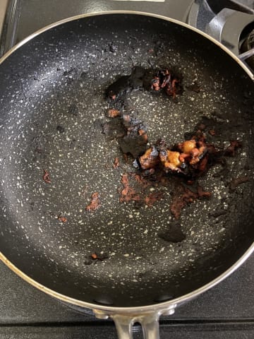 真っ黒二ィ炭化したのにぃ 🍳に張り付いてなくってぇ