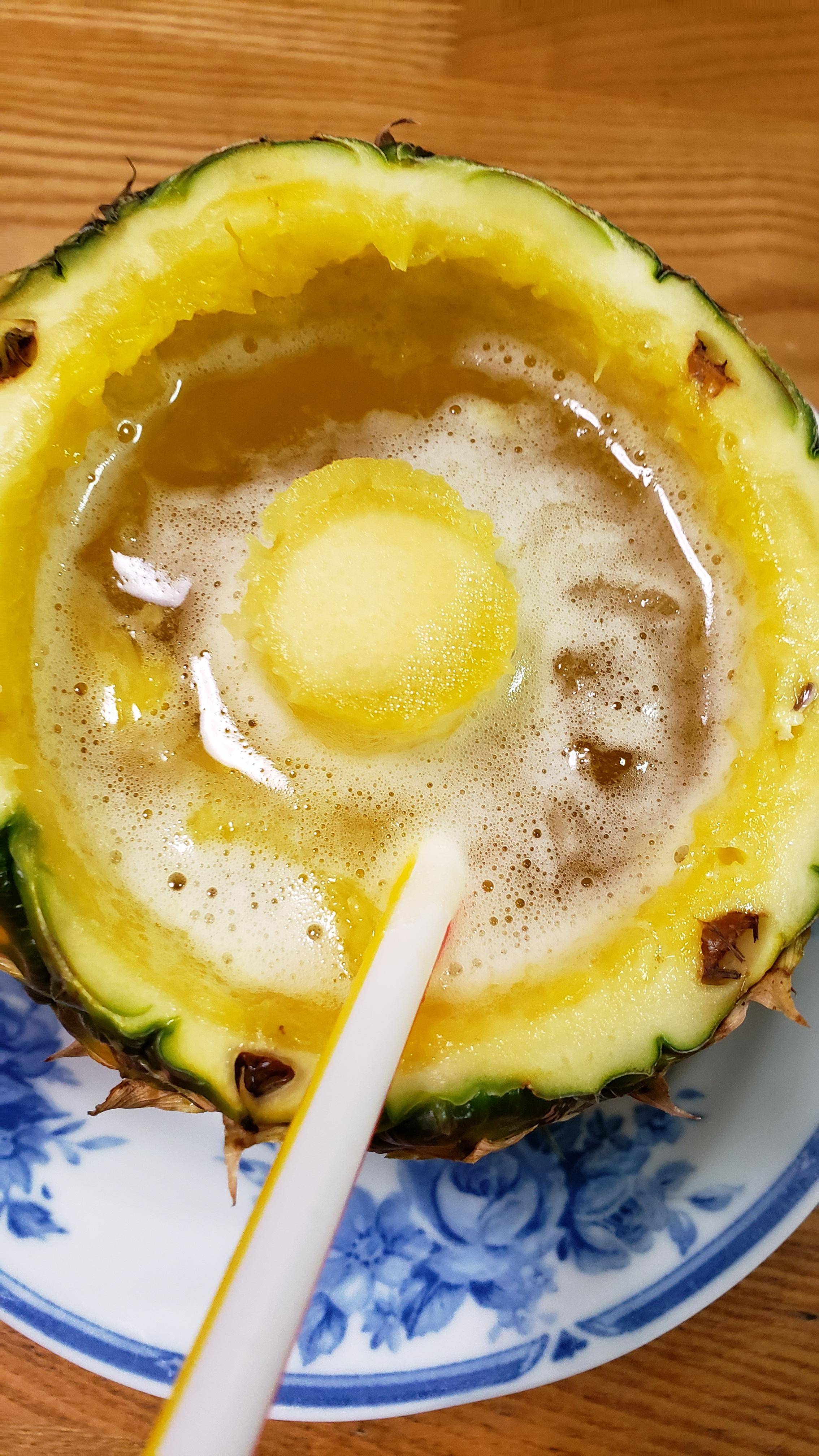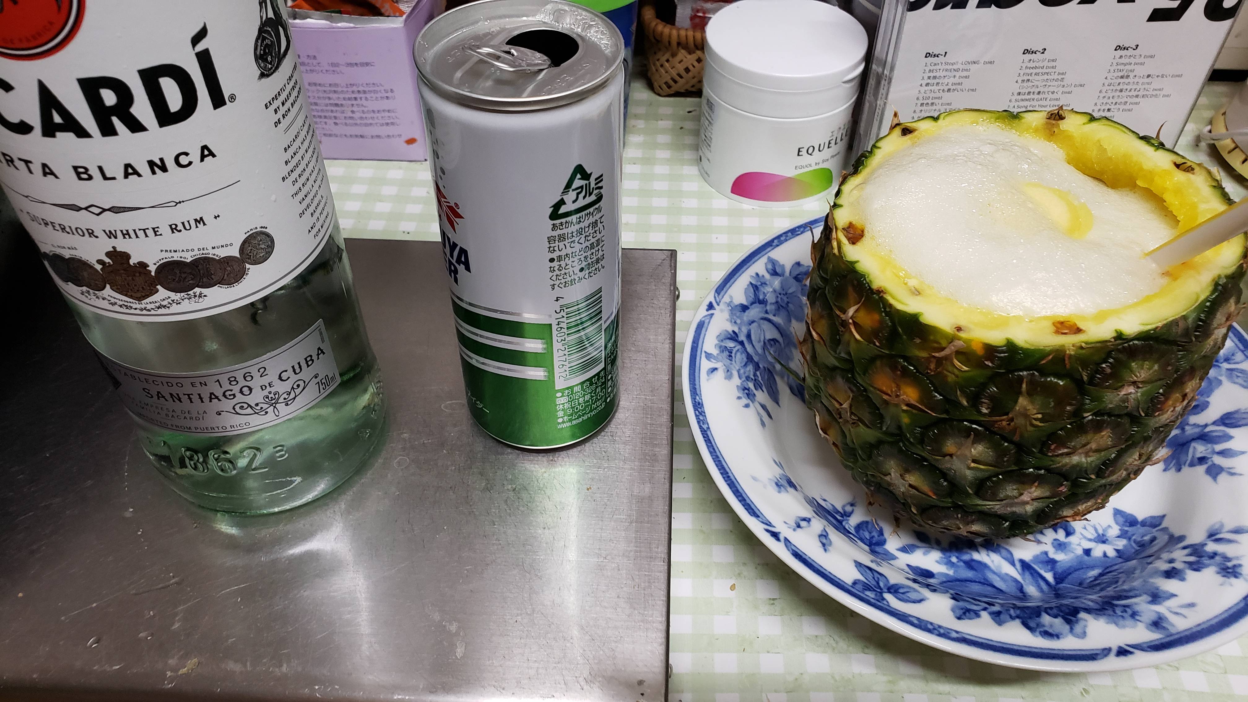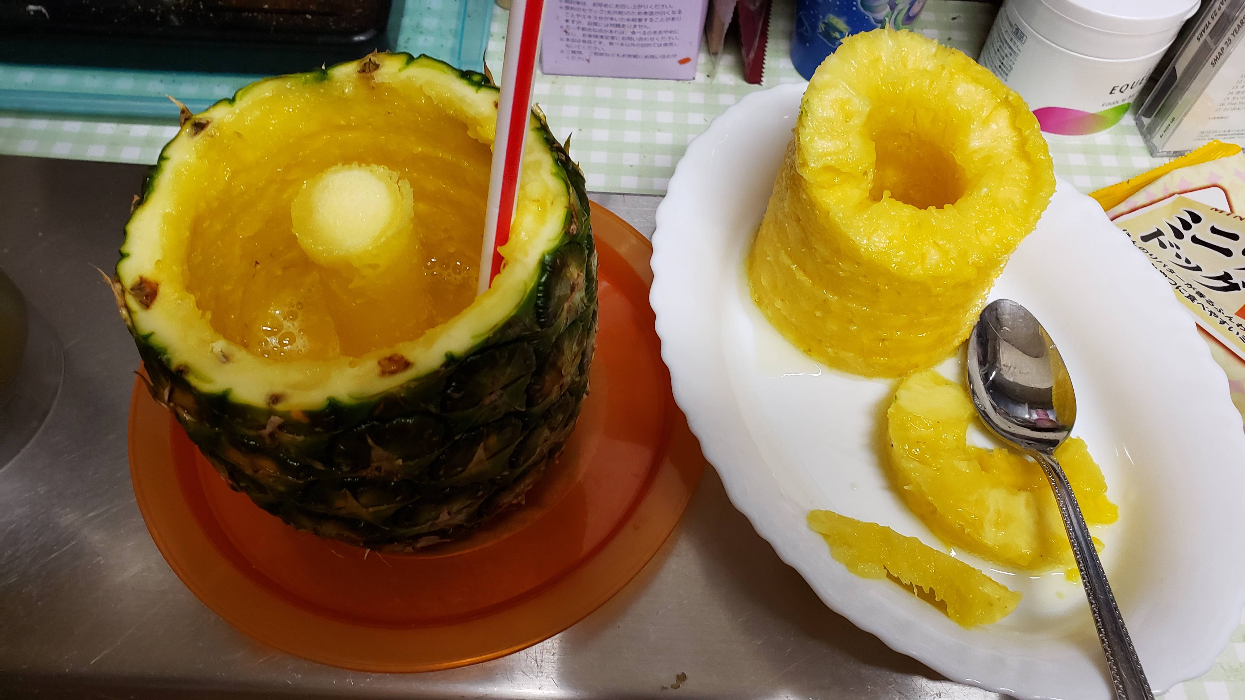 【画像】丸ごとのパイナップルくり貫いたんやがこれを使って酒を飲みます