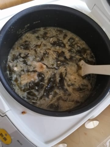 キノコ類を入れて炊飯器で雑炊作ると灰色と茶色の中間になるね