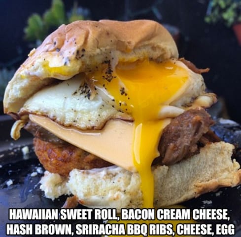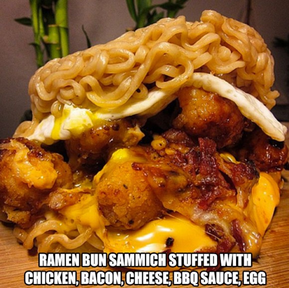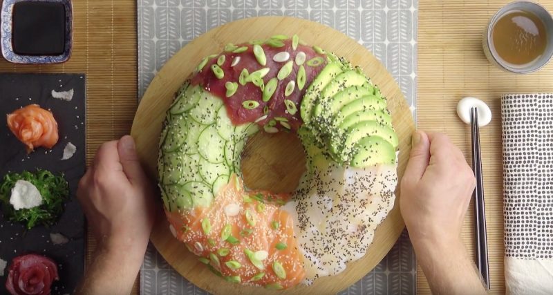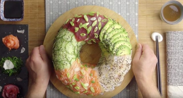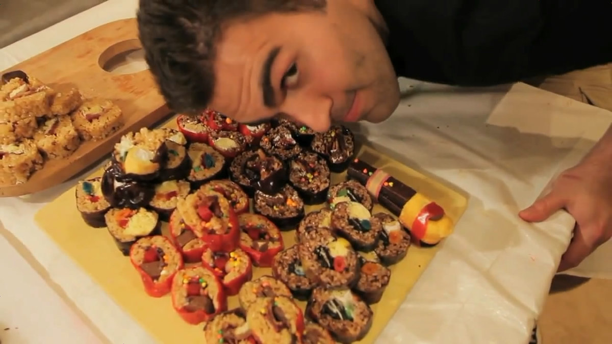 ベーコンとキャンディとマシュマロとチョコと色んなもんを入れて のりで巻いた寿司