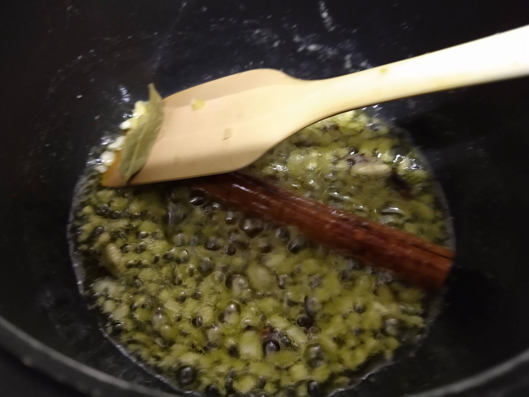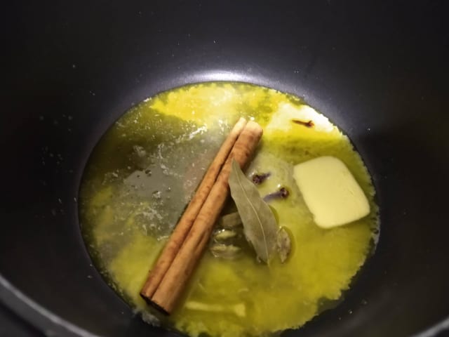 あと、バターチキンでも、最初に粒スパイスを炒めるのは普通の油で