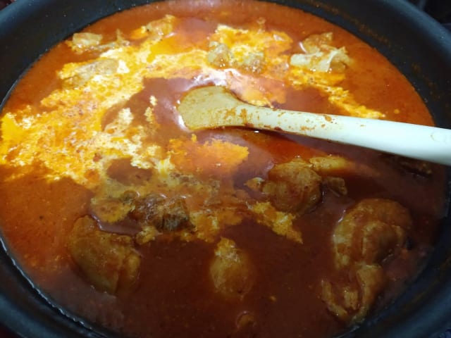 この手のカレーは缶に限らず水分はペースト状になるまで飛ばすんやけどな…