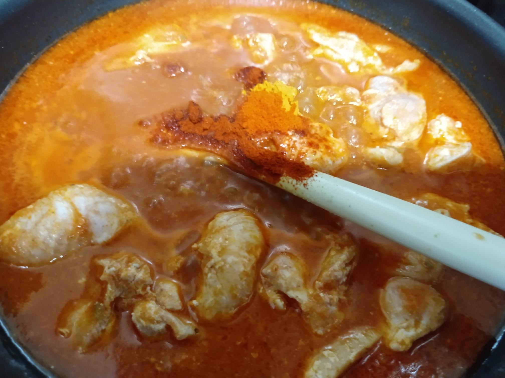 パプリカパウダー、ターメリック、カイエンペッパー、ガラムマサラを入れました