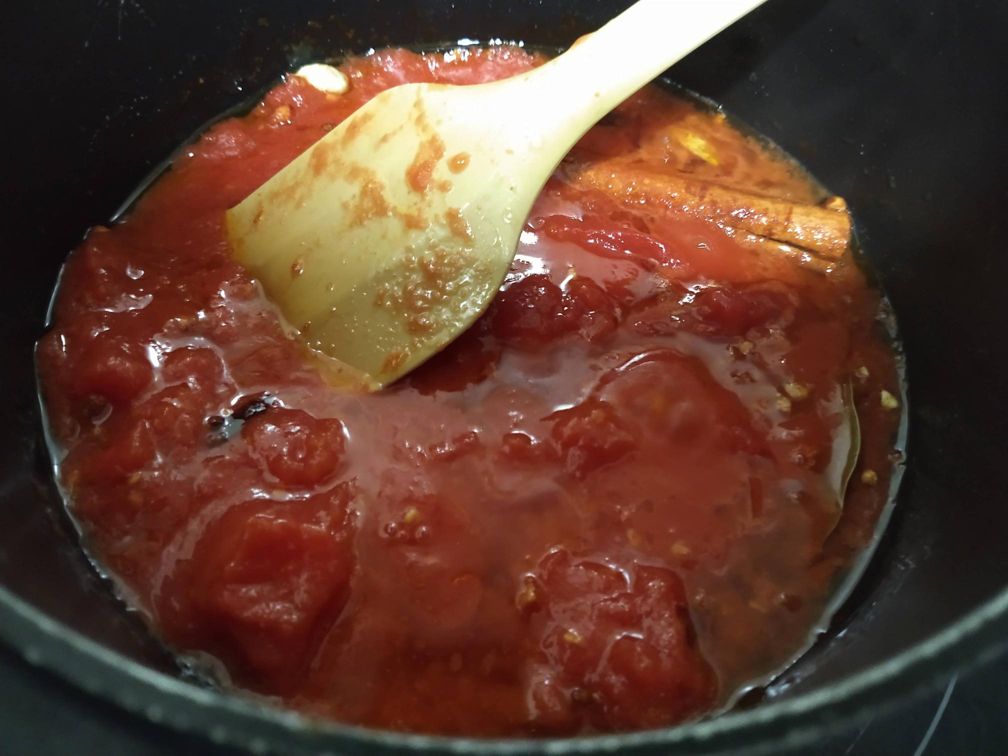 トマト感が強過ぎる気がするなら、念入りに炒めてトマト缶の水分を限りなく飛ばすと、トマトの酸味が飛んで言ってええで