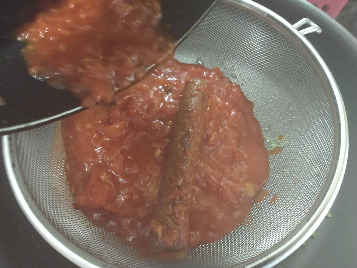 トマト缶は予めキッチンバサミで切っとくと、潰す手間が省けて楽ですよ