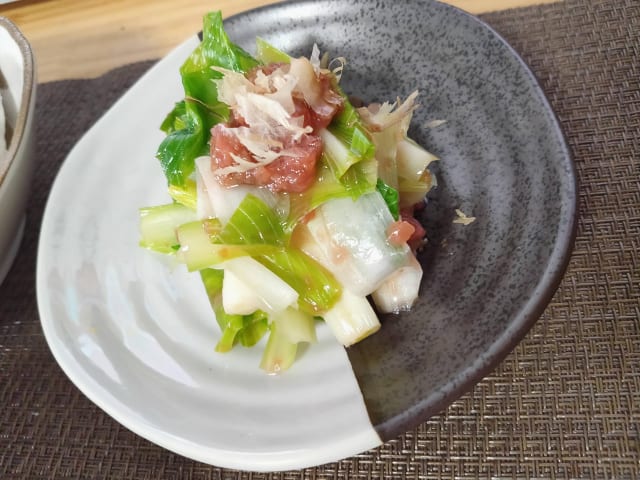 酢味噌和えがスタンダードらしいが味噌汁あると味噌かぶるやんってことで梅肉和えにした