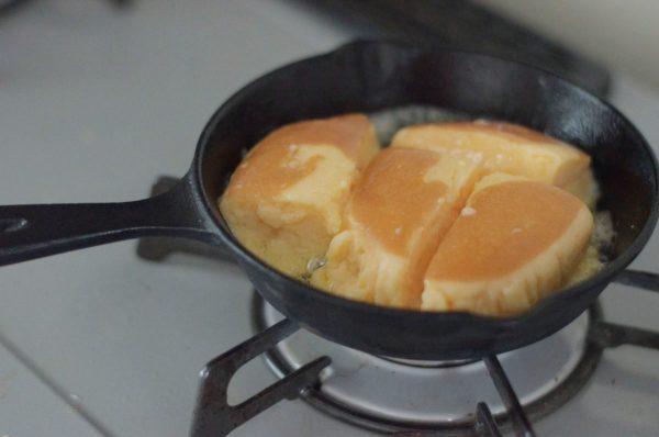 カステラフレンチトーストは店で食べたことあるけど案の定というか生地に卵液が染みこんでグズグズ