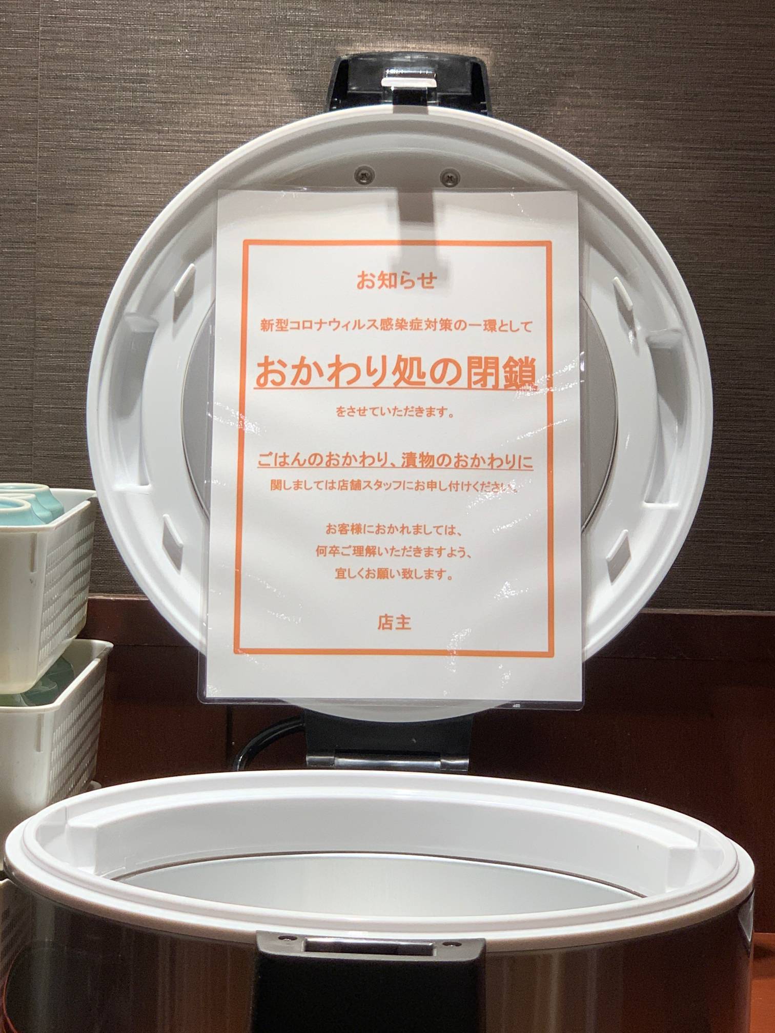 不特定多数が使いまわすセルフ式のお代わりはコロナ対策上は好ましくないって通達が来とるんや