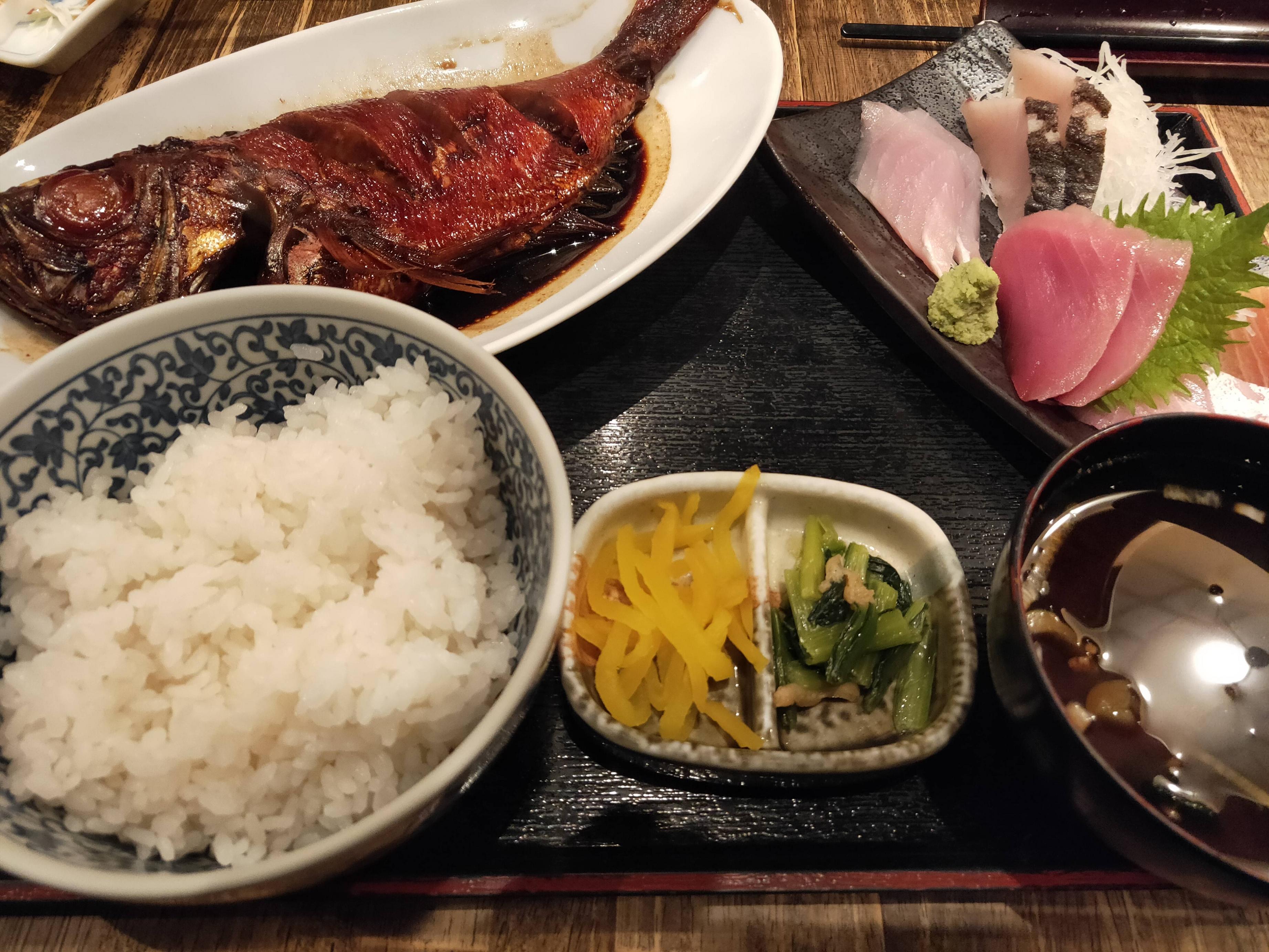 楽味家まるげん 刺身付き金目鯛の黒潮煮定食1980円