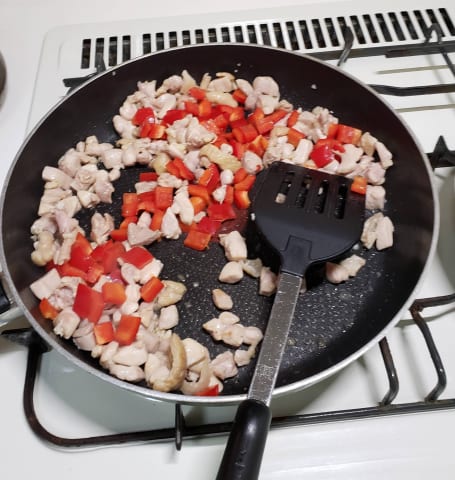 レシピには挽肉って書いてあること多いけど、挽肉だと細かすぎてパプリカに食感負けてしまうんや