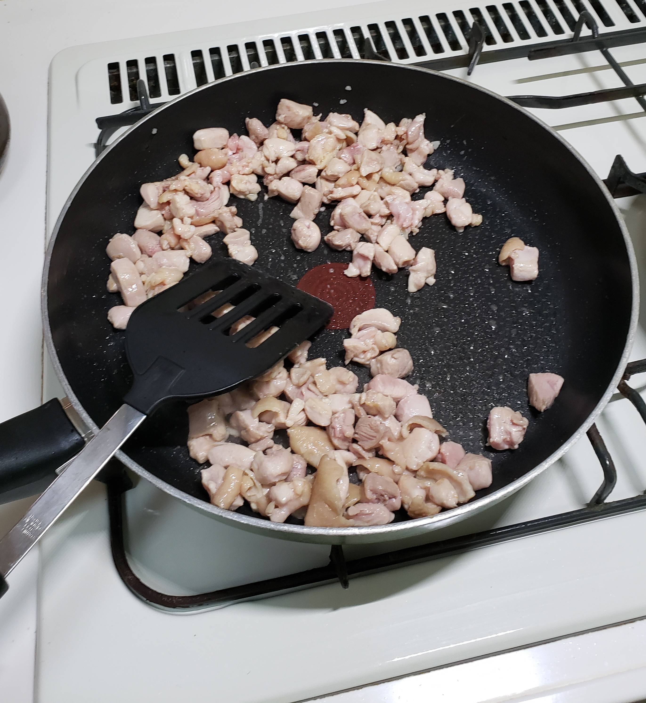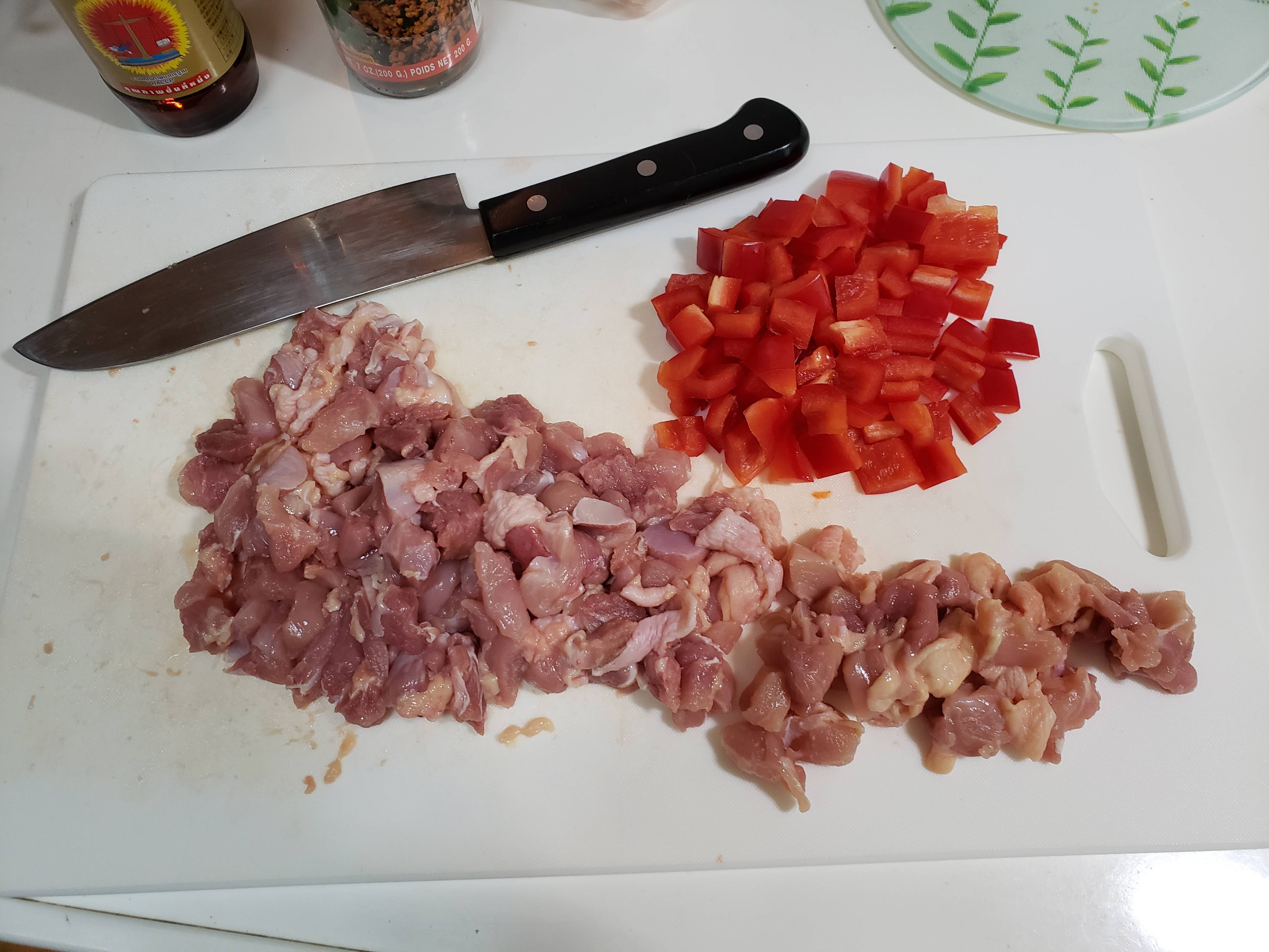 本当の初心者なら鶏肉をあんな風に賽の目っぽく切ることでさえ難儀するはず。