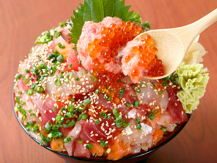 海鮮丼が酢飯か白米か、温かいか人肌以下かは店による