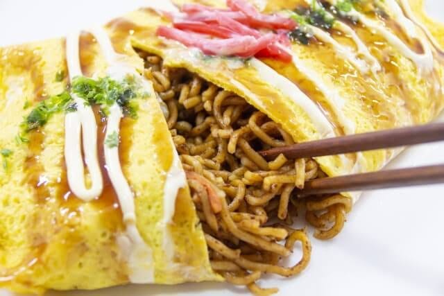 薄焼き卵で包んでケチャップかけたオムそばが至高のメニュー