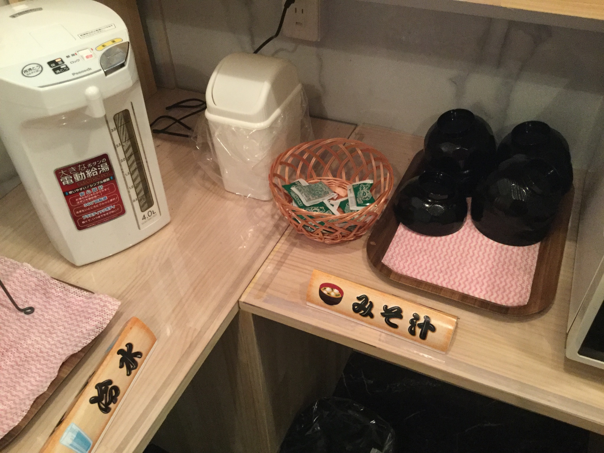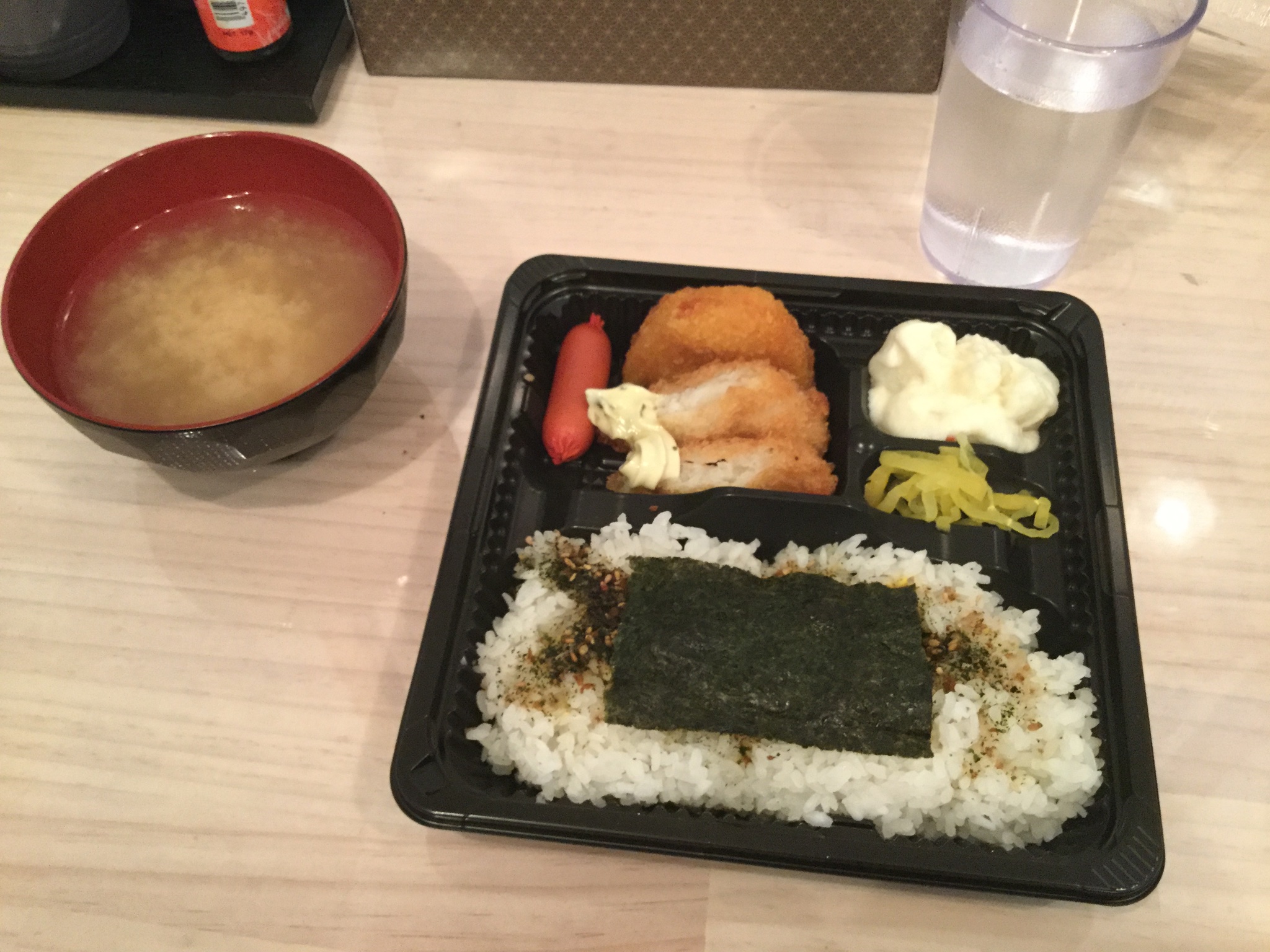 60分100円で、ウェルカムドリンクとして缶コーヒーが貰えて、弁当と味噌汁が食べ放題。 看板に書いてるカレーと牛丼は無し。のり弁当だったけど日替わりらしい。部屋への持ち込み禁止で指定のスペースで食べるルール。百円…。