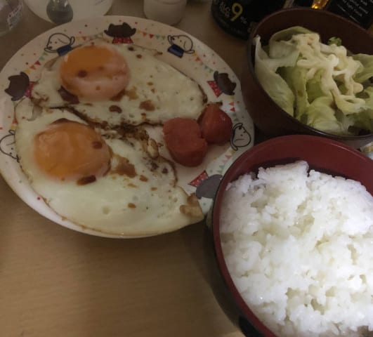 目玉焼きいいね ソース派だったが醤油かけてみたら旨かったよ