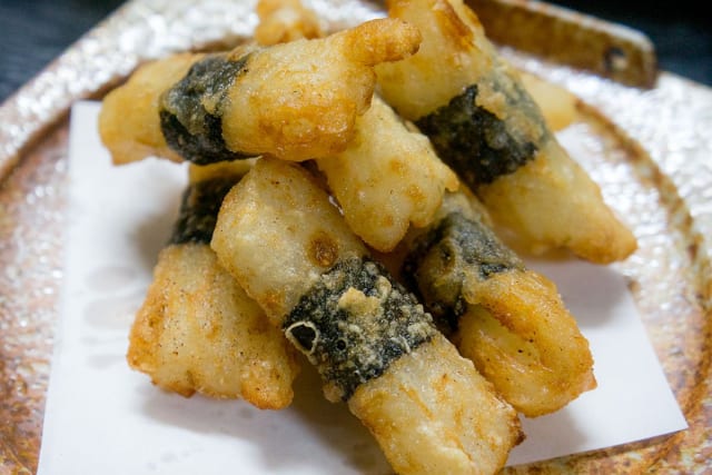 大和芋を擦って海苔で挟んで揚げたやつ、めっちゃ美味い