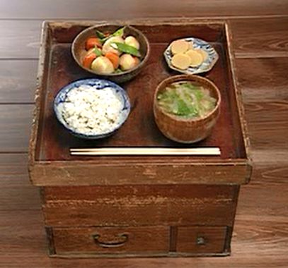 地方から船で輸送される保存の効く米、味噌、干物、漬物、等が普段の食事の中心だったので