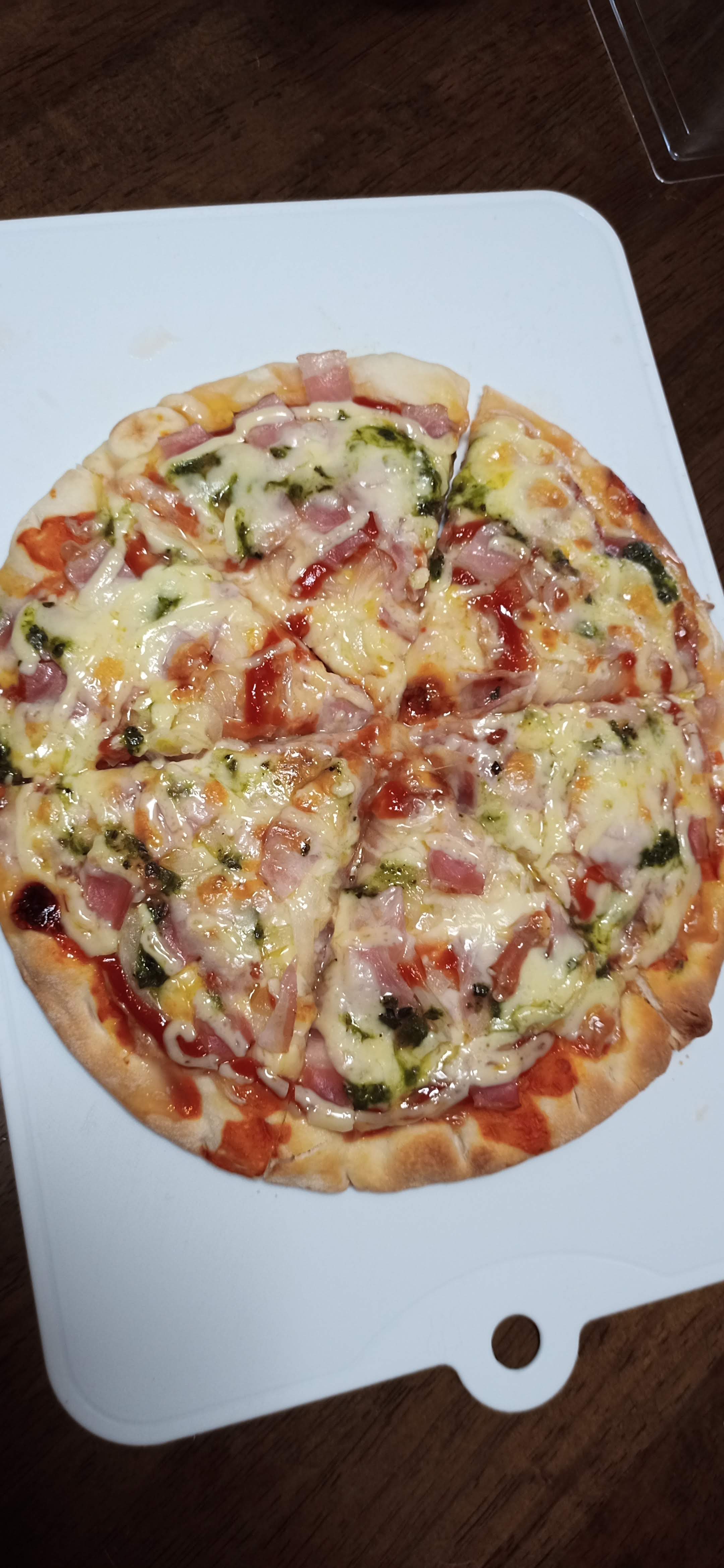 わいも日本ハムのピザにトマトとピーマン乗せてるわ