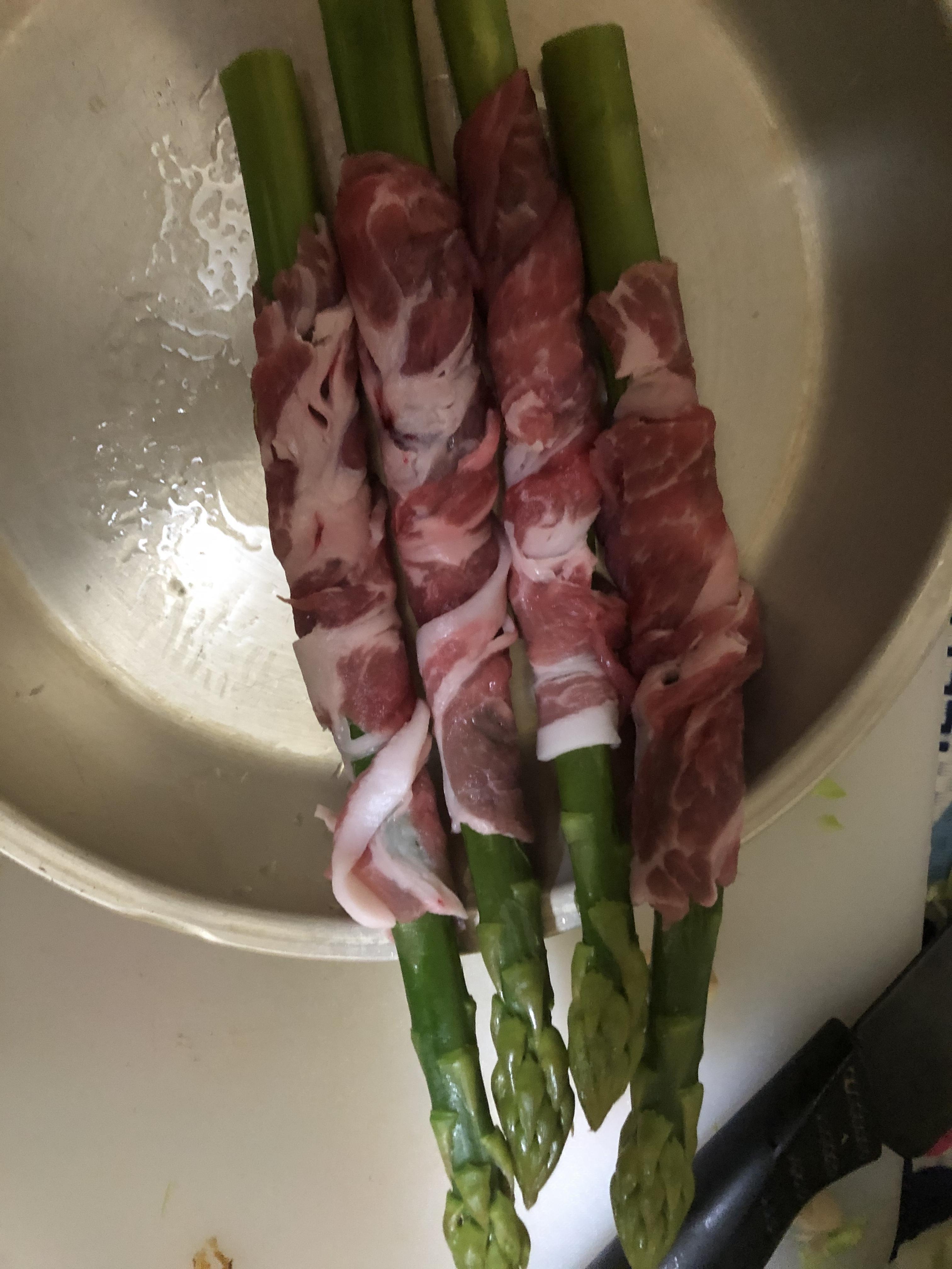 アスパラは高さ揃えて(根に近い方(硬いから))を切ってから肉を巻き付けるのも良い