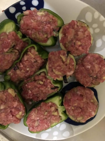 子供の頃に母親に教わったが、輪切り(&種取った)ピーマンに肉を詰めれば小さいハンバーグの要領で焼ける